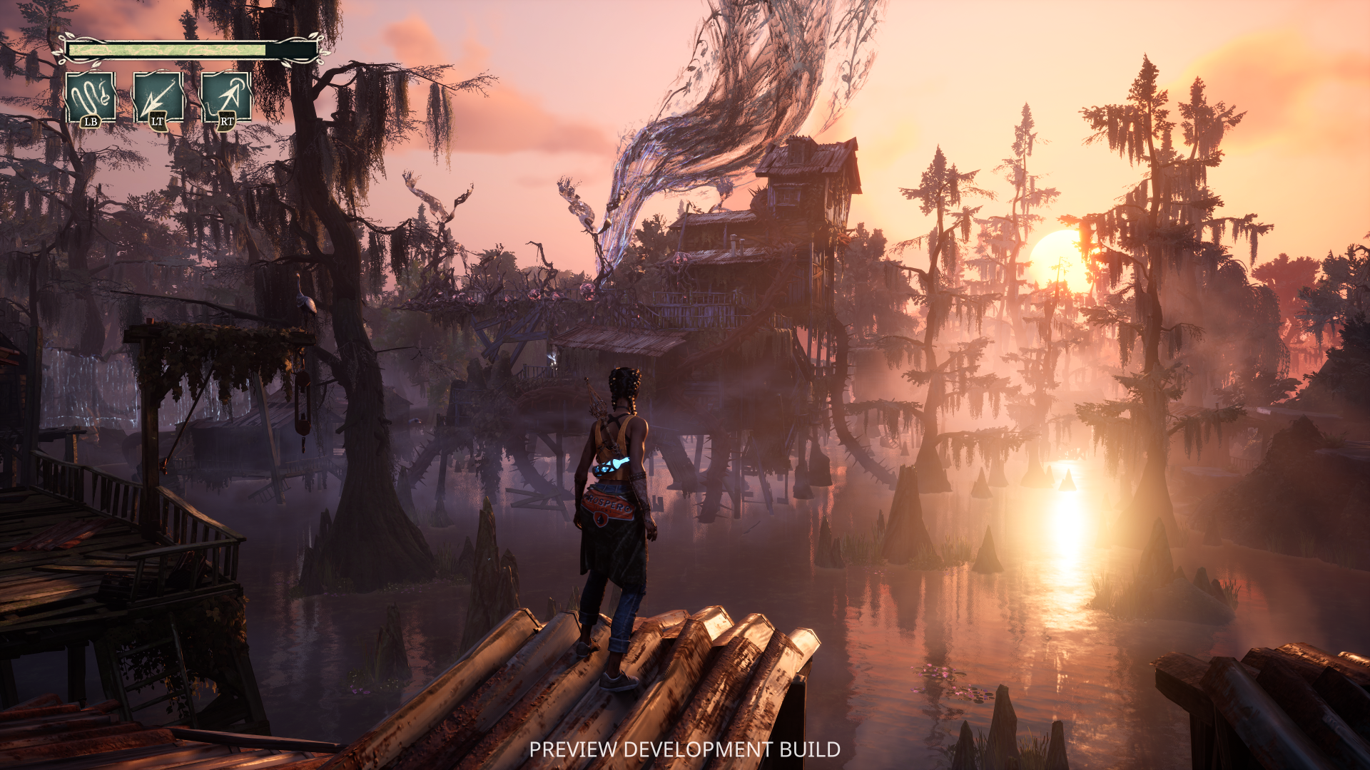 The thing with South of Midnight is that “unique mythology” is one of the more contemporary collections of cultural traditions, superstitions and situational lore we have in the modern world, but because of its isolation and age against the more studied and well-known mythologies throughout antiquity, it’s kind of still an unknown, or is maybe just glossed over. A “bottle tree”, for example, is something most of us would look at as either a crazy cook just busying themselves like so many can collectors out there, or kids being creative in the vandalism, art or vandalism-as-art stakes. What we learn through South of Midnight, however, is that a bottle tree is actually designed to ward off evil spirits (in most cases) and that each bottle on said tree once housed bad or even traumatic memories in need of being purged, the purged bottle subsequently becoming a totem to fight back those evil spirits because it’s now a pure vessel.